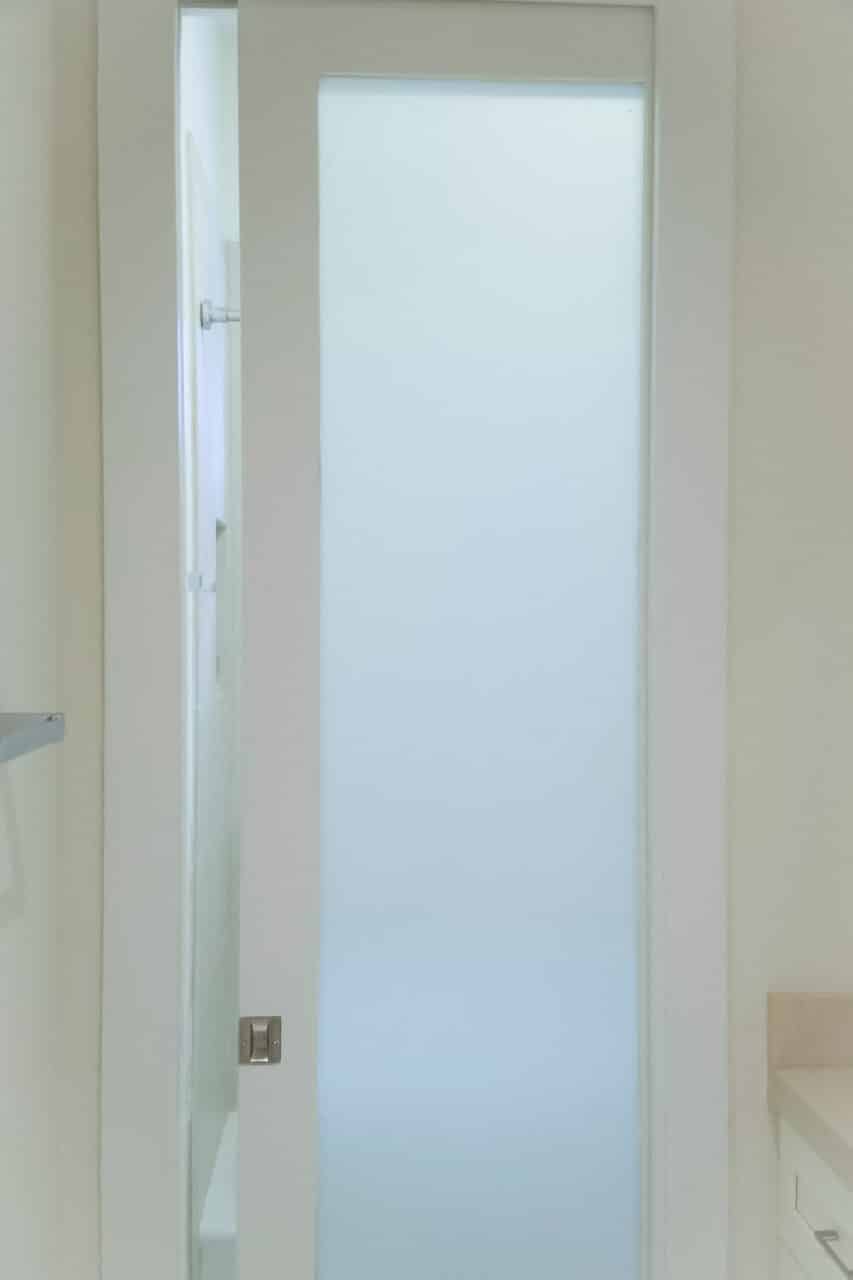 - Fogged glass panel doors were added to the bedroom and bathroom. The rest of the interior doors are solid-core shakers.